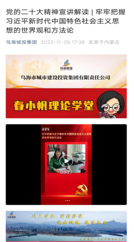 高舉旗幟、凝聚力量、團結(jié)奮進, 黨的二十大為新時代新征程黨和國家事業(yè)發(fā)展、實現(xiàn)第二個百年奮斗目標指明了前進方向、確立了行動指南。連日來,烏海市城市建設(shè)投資集團有限責(zé)任公司(以下簡稱“市城投集團公司”)各級黨組織把學(xué)習(xí)宣傳貫徹黨的二十大精神作為當(dāng)前和今后一個時期的首要政治任務(wù),加強組織領(lǐng)導(dǎo),周密謀劃安排,掀起了學(xué)習(xí)宣傳貫徹黨的二十大精神熱潮。
