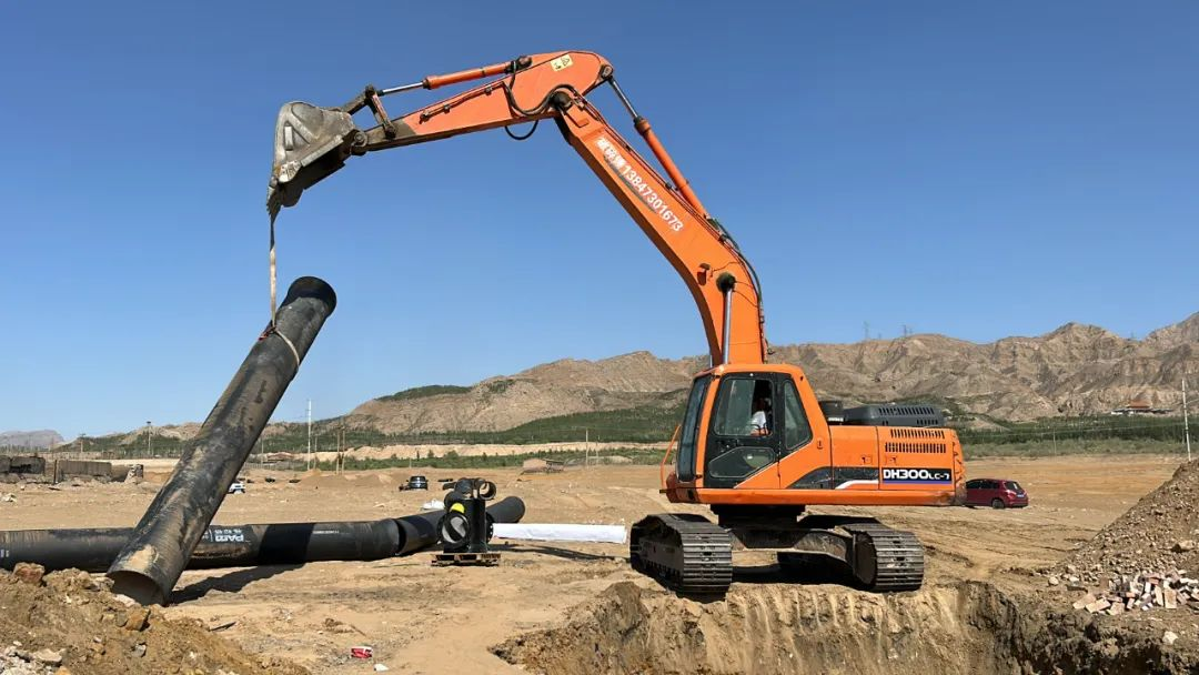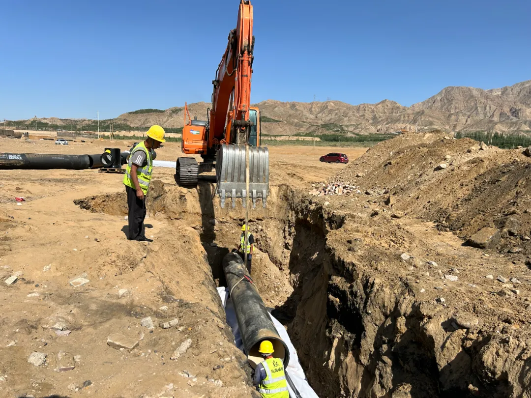 近日,記者在海勃灣區(qū)的南部?jī)羲畯S(chǎng)輸水管道項(xiàng)目現(xiàn)場(chǎng)看到,隨著挖掘機(jī)緩緩升起,一根長(zhǎng)約6米的給水管被緩慢放進(jìn)坑道。隨后施工