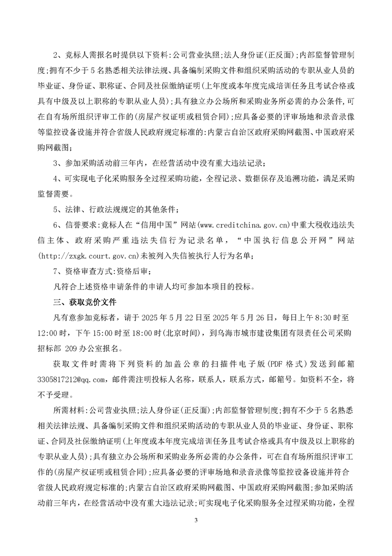 - 2025-07-24烏海市城市建設(shè)投資集團(tuán)有限責(zé)任公司五虎山井田南部采空區(qū)災(zāi)害綜合治理項(xiàng)目公開招聘項(xiàng)目負(fù)責(zé)人考試面試公告
