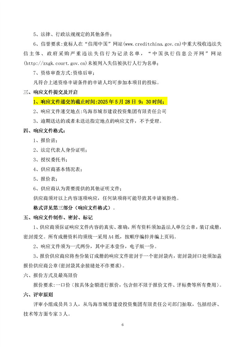- 2025-07-17烏海市濱河城市運(yùn)營(yíng)服務(wù)有限責(zé)任公司電梯維保服務(wù)商采購詢價(jià)文件
