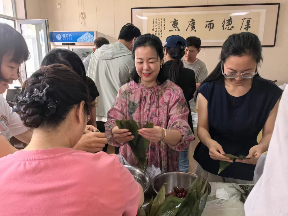 活動以艾草花束DIY手作拉開帷幕,大家以艾草為主材料,再搭配上裝飾掛件,一起動手制作艾草花束。一束束別具特色、香氣撲鼻的艾草花束,喚醒端午的儀式感。隨后,大家圍坐在職工餐廳,紛紛展示起了自己的包粽子手藝活,一個個裝滿糯米紅棗的粽子逐漸成形,這些粽子雖然模樣不盡相同,但都飽含著大家的心意和對節(jié)日的美好期待。