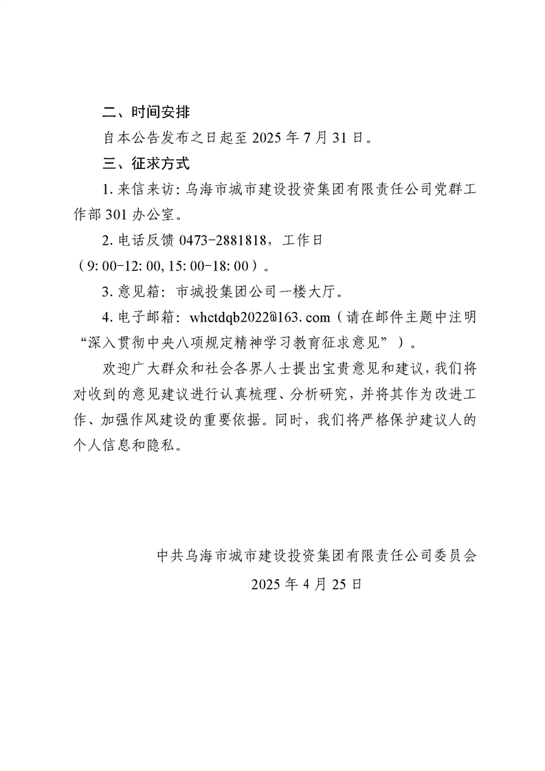 - 2025-07-21烏海市城市建設投資集團有限責任公司五虎山井田南部采空區(qū)災害綜合治理項目公開招聘項目負責人延長報名時間的通知