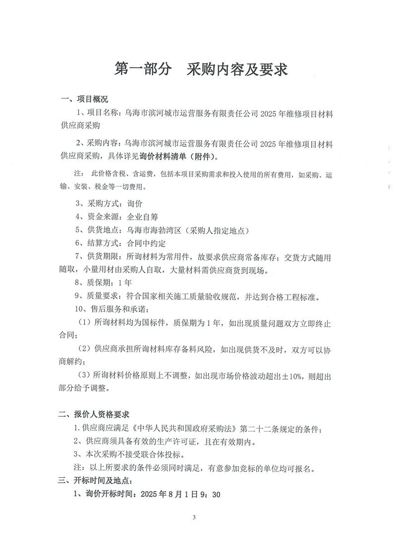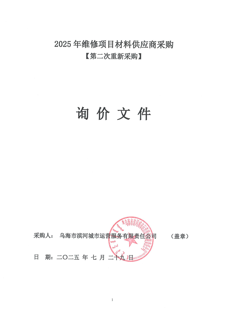 - 2025-07-17烏海市濱河城市運營服務(wù)有限責(zé)任公司電梯維保服務(wù)商采購詢價文件